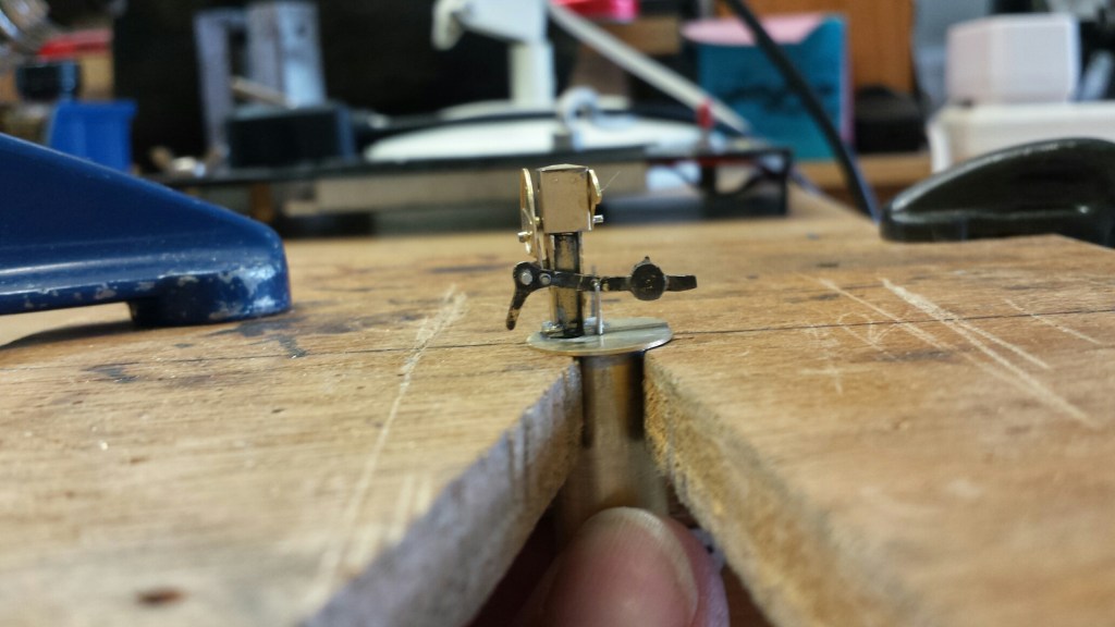Next up is an actual working ground signal built for our 0 Gauge Evercreech New layout. It sits in a tubular socket with a weight and paddle which will be pushed up from below by a servo underneath, the signal returning to danger by gravity. The etched kit from MSE is ‘challenging’ and needs a lot of work. If you don’t want it to work and be lit then the new cast brass kit from Scale Signal Supply is much better and less taxing to solder up. Making these signals work, be lit, and be removable for track cleaning is a real “what was I thinking” job but it looks like it can be done. The tiny LEDs used in ‘The Shed’ (see May2020) should push up inside the lamp casing so that will be tried first.
