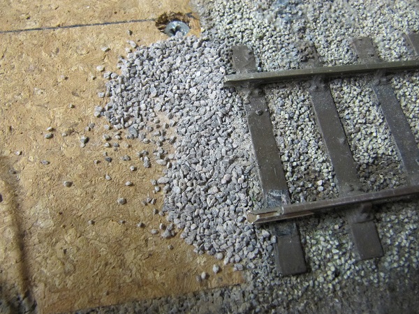 After much deliberation we will be laboriously producing our own ballast using Morris & Perry stone dust from their Gurney Slade Quarry. Ballast for the S&D seems to have been sourced from the nearby Emborough Quarry which is a nice touch. The raw stone dust is passed through kitchen sieves (retired), removing the large stuff with the coarser one and then as much dust as possible using the slightly finer one. A 25kg sack at £2.50 or so yields about 5kg of ballast and 20kg of mostly dust that can still be used to repair walls. The colour of the ballast doesn’t quite match the station area but the Chief Honcho think it’s better, and may even be a suitable substitute for that other railway’s ballast from Dulcote Quarry.