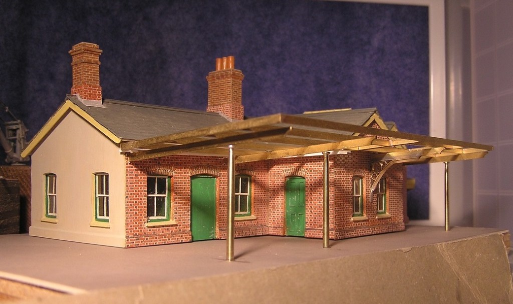 And in that not quite so sleepy corner of model railways, the brass canopy framing for the station building at Verwood being assembled ready for soldering. The red lines are the rafters which will be styrene and the blue lines the glazing bars of the roof light that was added to illuminate the waiting room. Needless to say much thought and resulting inactivity went into exactly where the brass should finish and styrene take over for this structure.