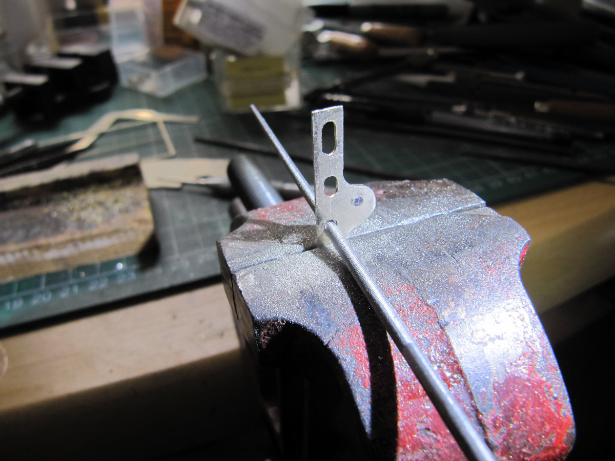 The Clauds had splashers for the bogie wheels which were quite decorative and the locos retained these on rebuilding. None of the etchings acquired over the years had parts to build them, so these are made out of three pieces of brass and the photo shows where they will be located. A club e-mail exchange has established that these parts are being assembled on a well used example of the very finest sort of ceramic soldering mat! We would definitely like to see a lot more of this engine!
