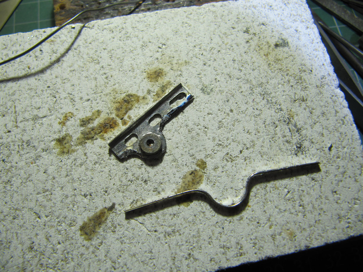 The expansion link trunnion castings needed modification on the inside to allow the link to rock. This trunnion casting was the one that was missing from the kit and supplied by Dave H from Bob A’s box of white metal castings. On modifying the casting for the left hand side, brain fade struck – I modified the wrong side! Could I make a recovery? In a word – no, so a fabricated one was made up from nickel silver sheet.