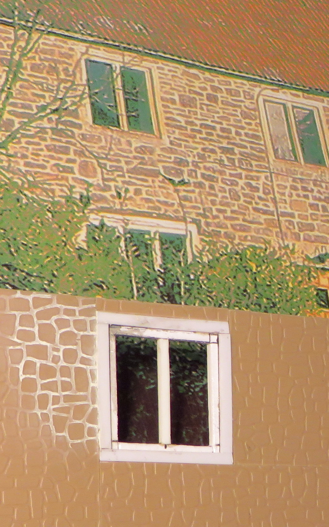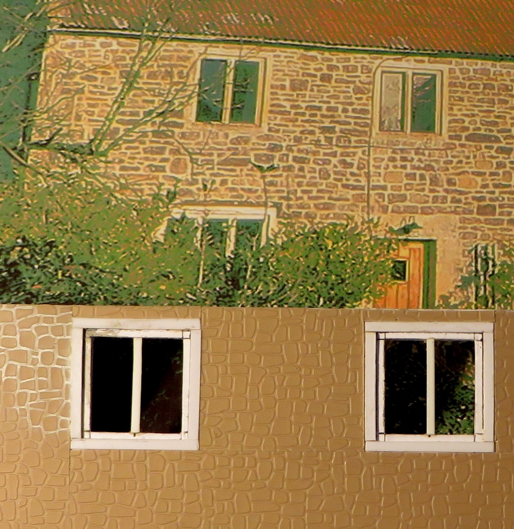 For Evercreech New a start has been made on the farmhouse that will live behind Prestleigh Viaduct. The photos show the front elevation – yes, the nice view no one but the operators will see! It has a card carcass faced with Slaters random stone sheet. Plastikard is used for the stone window and door surrounds which are flush with the random stone which has been cut around them, with stone mullions in a thicker Plastikard let in. The casements with central glazing bar might be in soldered brass, glazed of course, set behind the card carcass. A small area of white mortar has been added which picks out the stones nicely. The random stones aren’t quite a match with the original but in our view close enough.