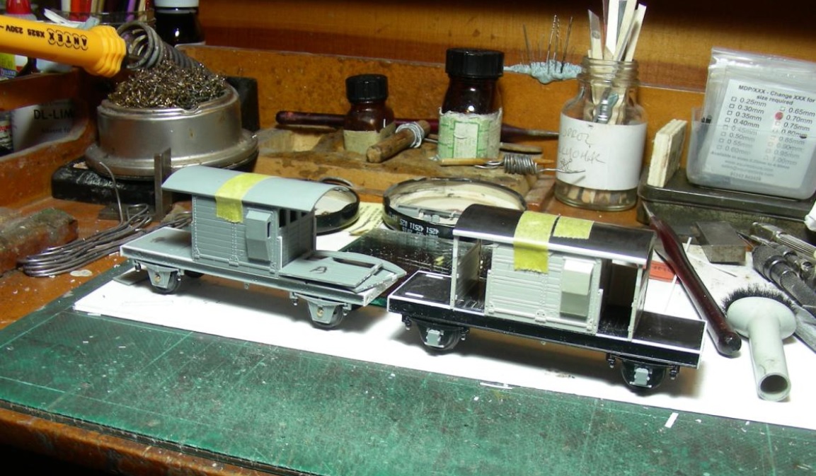 Peter discovered a couple of Cambrian Kits in his stockpile, the 25T one will be built as a WD one like the one at Yeovil Junction. The kits aren’t the best but with a bit of work and replacement parts they come out OK. A bit like the early Ian Kirk kits, which became Parkside and are now Peco. The tooling was all hand sunk just like Airfix. With the ‘benefit’ of being able to work on the real thing, the supplied brake shoes were obviously the wrong shape, so photos of the real thing were traced and a 3D model produced with a view to getting some 3D printed.