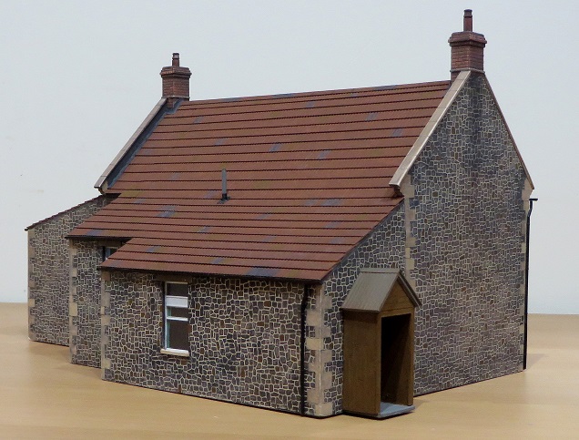The represents the farmhouse as it was in the run-up to the closure of the railway. It has since been much extended at the rear which would totally change the view that the public would see on the layout. More views of it in situ below.