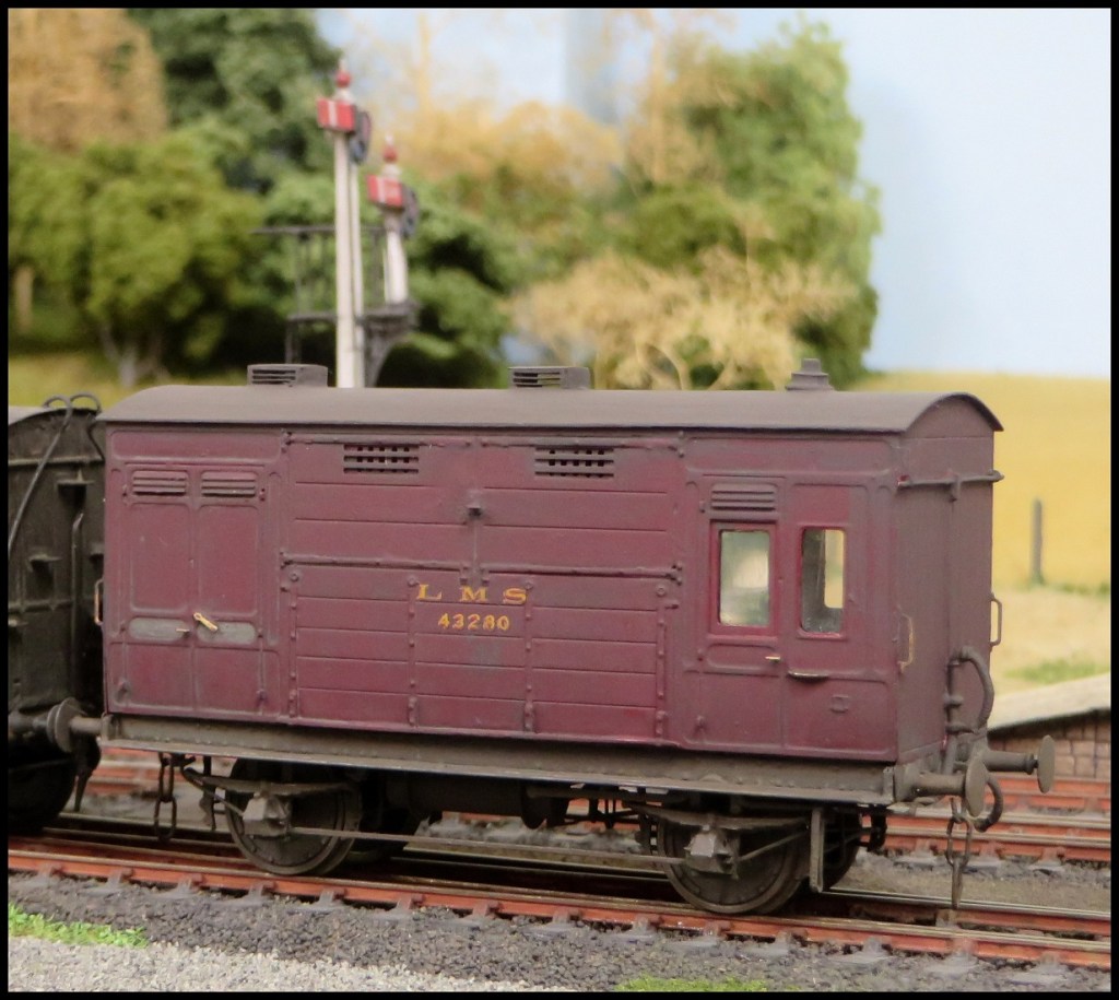 This is an LMS horsebox photographed on Kingsferry, but built by Simon K in 4mm many moons ago from a PC Models kit. Simon, no longer a 4mm modeller, kindly gave it to Allan. Allan has added 3-link couplings (probably should be screw-link but he’s none left) and weathered it. We definitely like to see a nice, fairly rare, model of an interesting vehicle! Kingsferry incidentally has been easily our most visited web page since April.