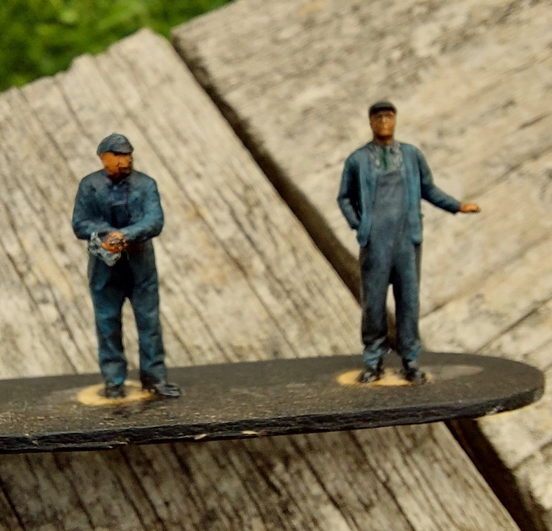 In a faraway place Dominic has spent several nights painting 3 sets of 4mm scale crew to go in locomotives for Coombe Town. The first image is a Modelu set. The second is a set for the Model Rail 16xx printed by Hardys Hobbies. The 3rd and 4th also from Hardys are for the B2 Peckett.