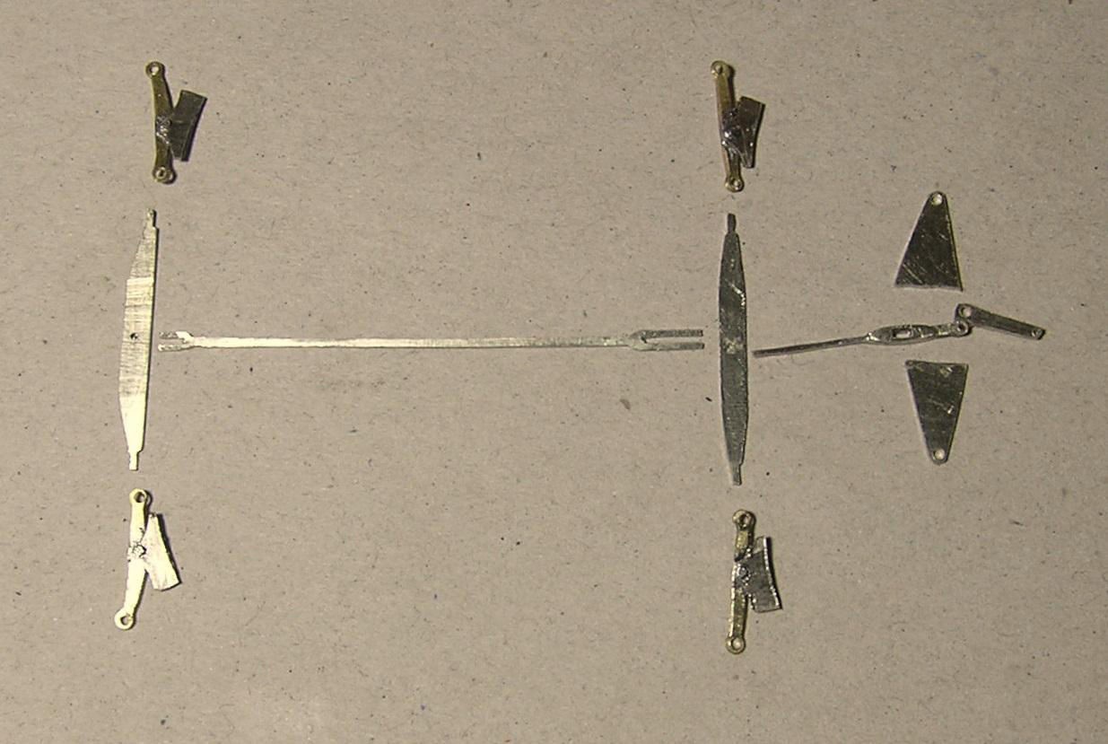 It uses a Perseverance chassis with twin beams and HLK hornblocks. By the time the correct ride height had been gained the frames had been reduced to a ‘power pod’ and a vestigial bit of frame above the bogies. The bogie has side control using coil springs and due to the twin beams takes the weight of the front of the body which is applied centrally between the bogie wheels. Steve’s usual Multi-box had been fitted with a Mashima 1224 motor, but in truth there wasn’t really room for this setup, so the more compact HLK RoadRunner has been fitted instead. The “Persy” brake etches were wrong on so many levels that a scan of the GA from Bradley was scaled and traced in QCad. This was printed it out and UHU’d to some .015″ nickel silver sheet and a set of brake parts was laboriously fretted out.