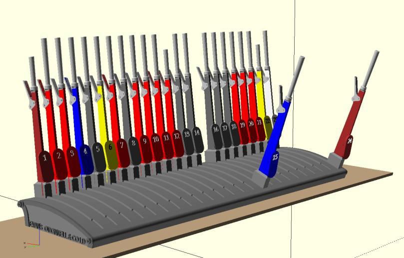 In contrast this is a 3D render of the much longer frame at West Moors, still to Stevens pattern, but shown here as manufactured by Evans O’Donnell & Co. This frame had some shortened handles and the later SR Oval Plates. Both frames are built from a parameter file, so it is relatively easy to cater for other Stevens London style frames.