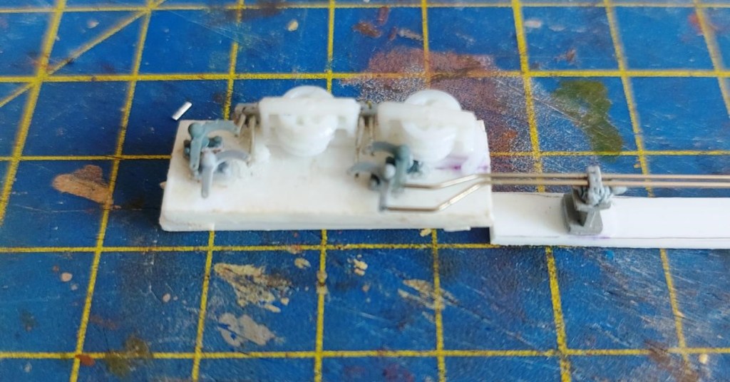 This is the loco attached to the tender. The dragbeam (and running plate) is currently a scale 6’6″ wide and that seems very narrow. The running plate is visibly 6″ narrower than the bufferbeam, that in itself is about the same width as the Beattie tender buffer beam. Photographs confirm that the loco was narrower than its tender but by this much? The Stour of 1884 would have had a sort of pressed steel looking Beattie cab, and the CAD for that will be more cardboard based to try to confirm what an etch for that should look like.