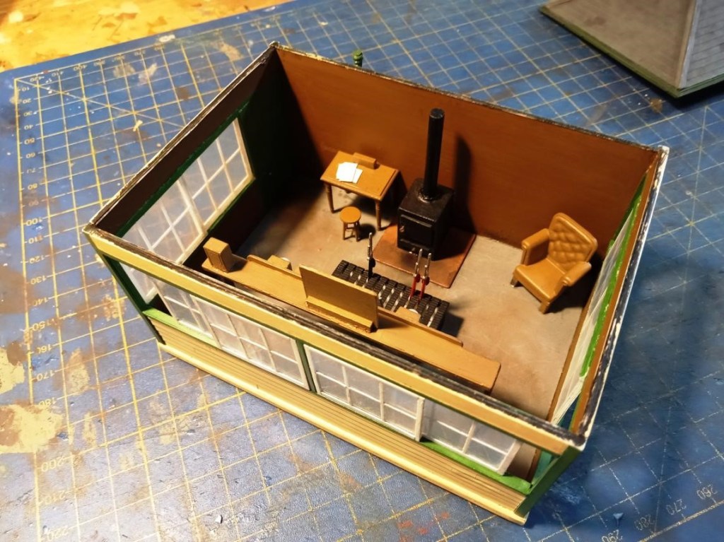It is constructed in card and Plastikard entirely from photographs as it was demolished when the line closed in 1966. It represents the signal box pre-nationalisation when the chimney was extant. It is finished in the brown and cream of the LMS parent company. Perhaps Allan was concerned that the Southern vivid green and cream would have shown up his collection of GWR engines in that dull browny-green so beloved of Swindon. A superb S&D model by an enthusiast for all things GWR – whatever next?!