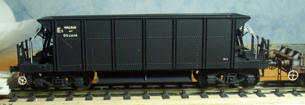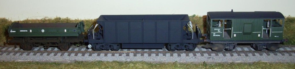 Jim has been working away at constructing a train of 10 autoballaster wagons in 2mm Scale. They are N Gauge Society kits which will have 2mm finescale wheels installed at the last stage – not a straight-forward kit with a sheaf of very delicate etches. The first batch of five have brass etches but the second batch, yet to be started, have stainless steel etches so they may be a little more durable. Below is a picture of the prototype: