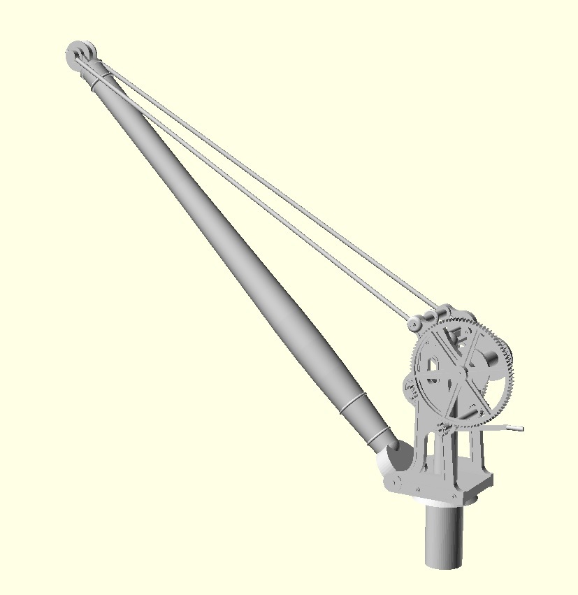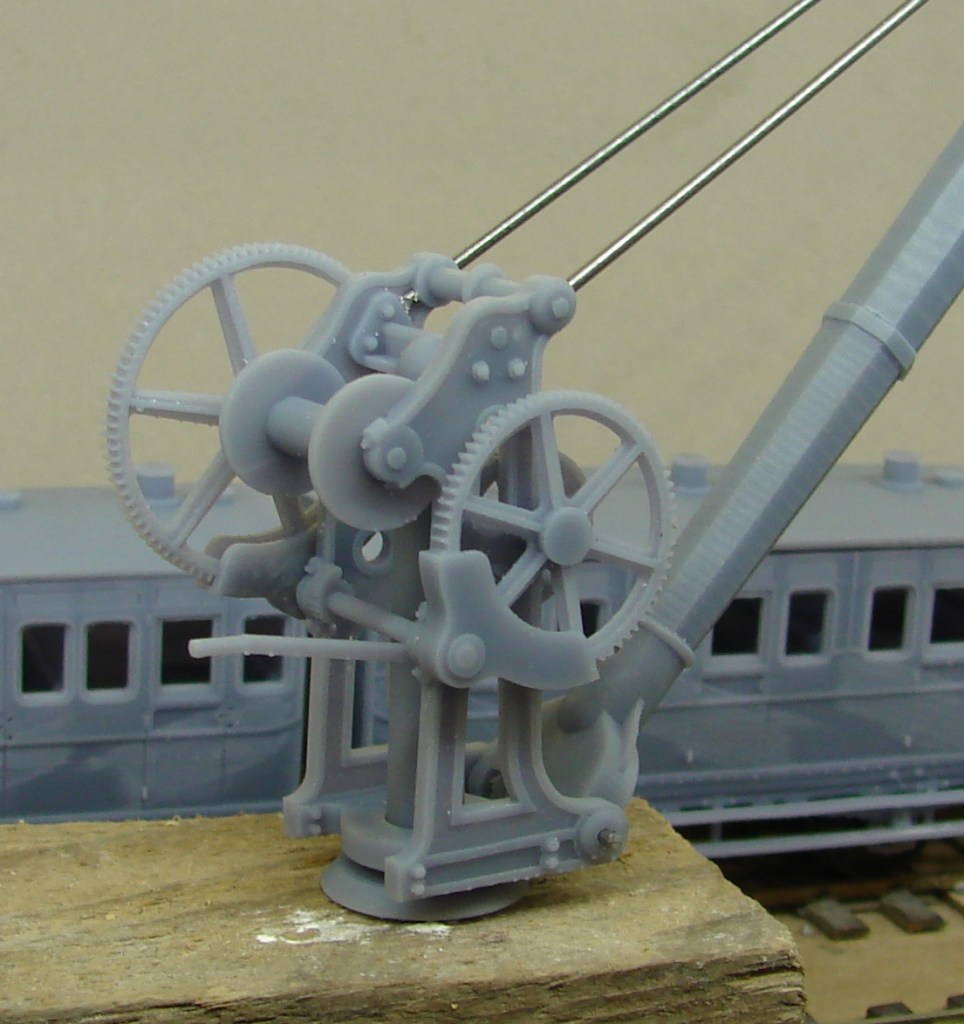 Through the power of CAD and 3D printing I was able to generate the frame handed and draw up the necessary eight spoke gears. We don’t know too much about the prototype, so this cannot claim to be an accurate model of Swanage, but this version of the Verwood/Semley Crane does I hope give a reasonable impression of it.